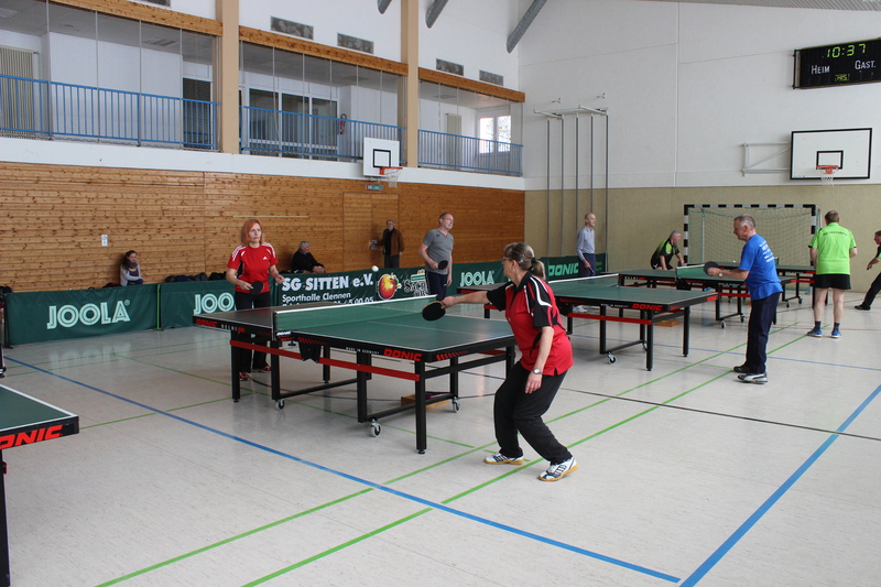 Zum Ausklang der Blütenfestwoche trafen sich am letzten Sonntag wieder tischtennisbegeisterte Senioren zu ihrem Turnier. Die Veranstaltung der SG Sitten e.V. fand traditionell in der Sporthalle Clennen statt. 5 Frauen und 11 Männer tummelten sich um das kleine runde Zelluloid.