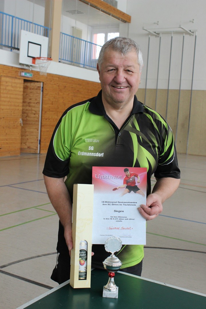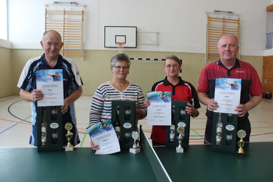 Anlässlich der Blütenfestwochen fand das 12. Seniorenturnier im Tischtennis der SG Sitten in der Turnhalle Clennen statt. Am Turnier für die „ jung gebliebenen Alten“ nahmen 2 Frauen und 11 Männer teil.