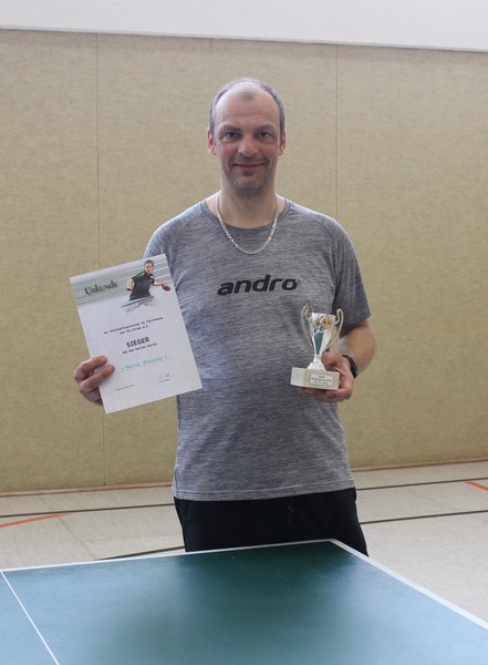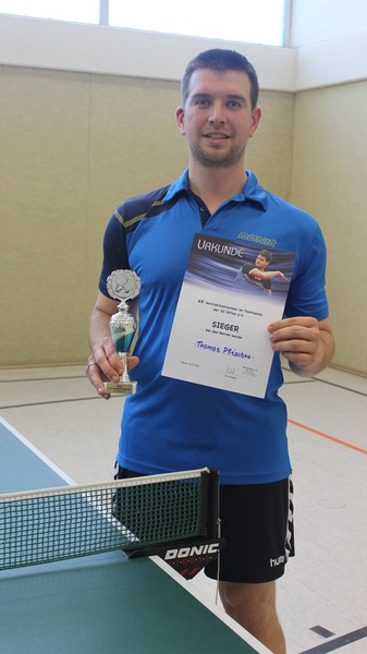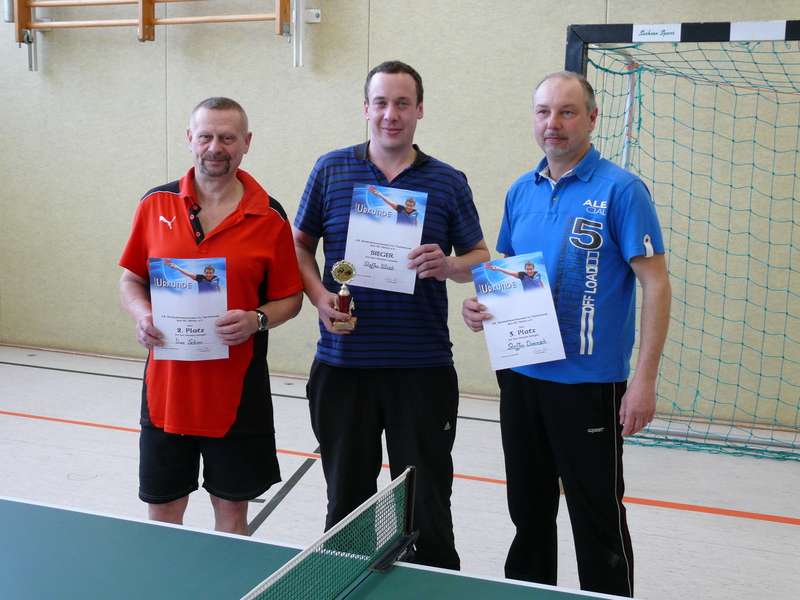 Bei den Männern zogen Thomas Plischke aus Naunhof und Rene Schlegel aus Markneukirchen ins Finale ein. Hier setzte sich Thomas Plischke in einem packenden Match knapp mit 12:10 im 5. Satz gegen den starken Vogtländer durch. Im kleinen Finale konnte sich Uwe Schier, ebenfalls aus Naunhof, den 3. Platz sichern.