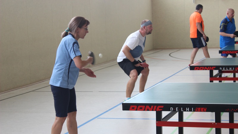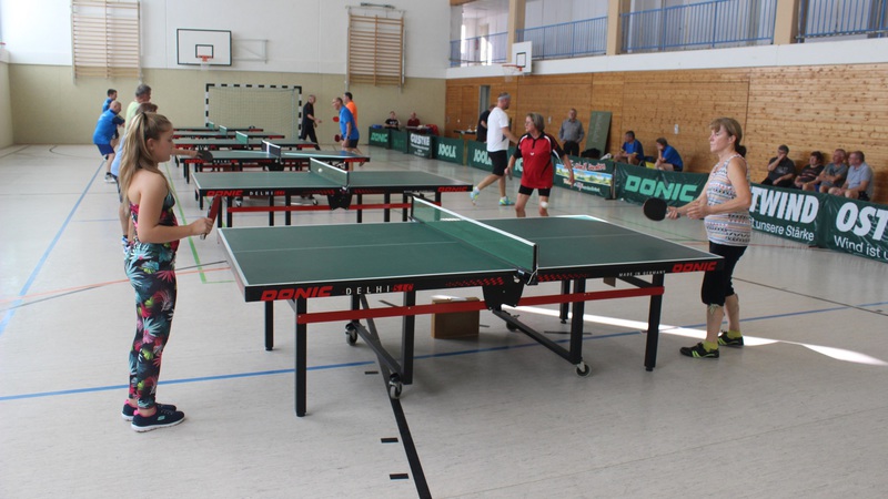 Nun hat das Turnier schon einen guten Ruf und natürlich auch Stammgäste. So kamen die Ballenthusiasten wieder vom TSV 1884 Naunhof, vom LSV Mörtitz, vom TTV Mixdorf, aus Frankenberg, Chemnitz, Leisnig und vom eigenen Verein. Es stellten sich 6 Frauen und 18 Männer dem Wettkampf. Die Frauen spielten wieder direkt gegeneinander, die Männer erst in 4 Gruppen und dann im KO System weiter.