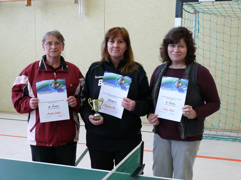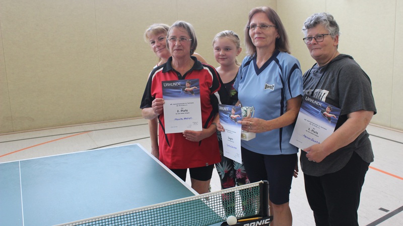 So setzte sich bei den Frauen Rita Goldschmidt vom TTV Mixdorf (Brandenburg) vor Kerstin Ossenkopp aus Chemnitz und unserer jüngsten Teilnehmerin Johanna Hinkelmann aus Zettlitz (9 Jahre) durch.